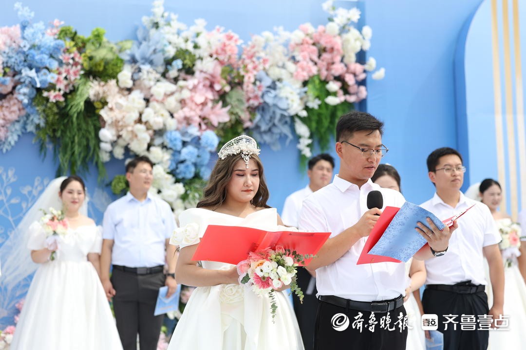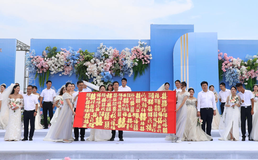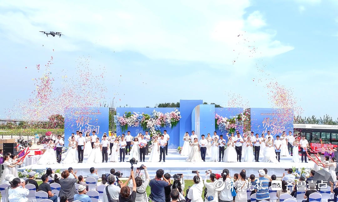 8月28日上午,“情定山海间”烟台市移风易俗主题集体婚礼举行(齐鲁晚报·齐鲁壹点 李自强 摄)