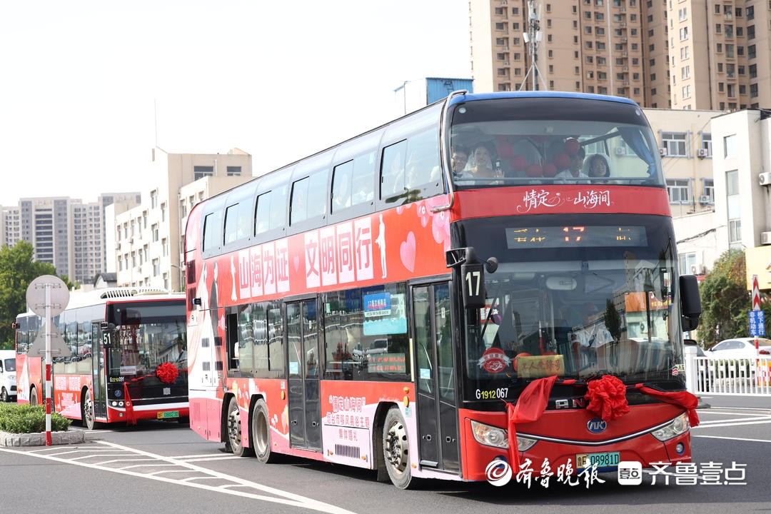 装扮喜庆浪漫的17路和51路公交车,载着新人们向幸福出发